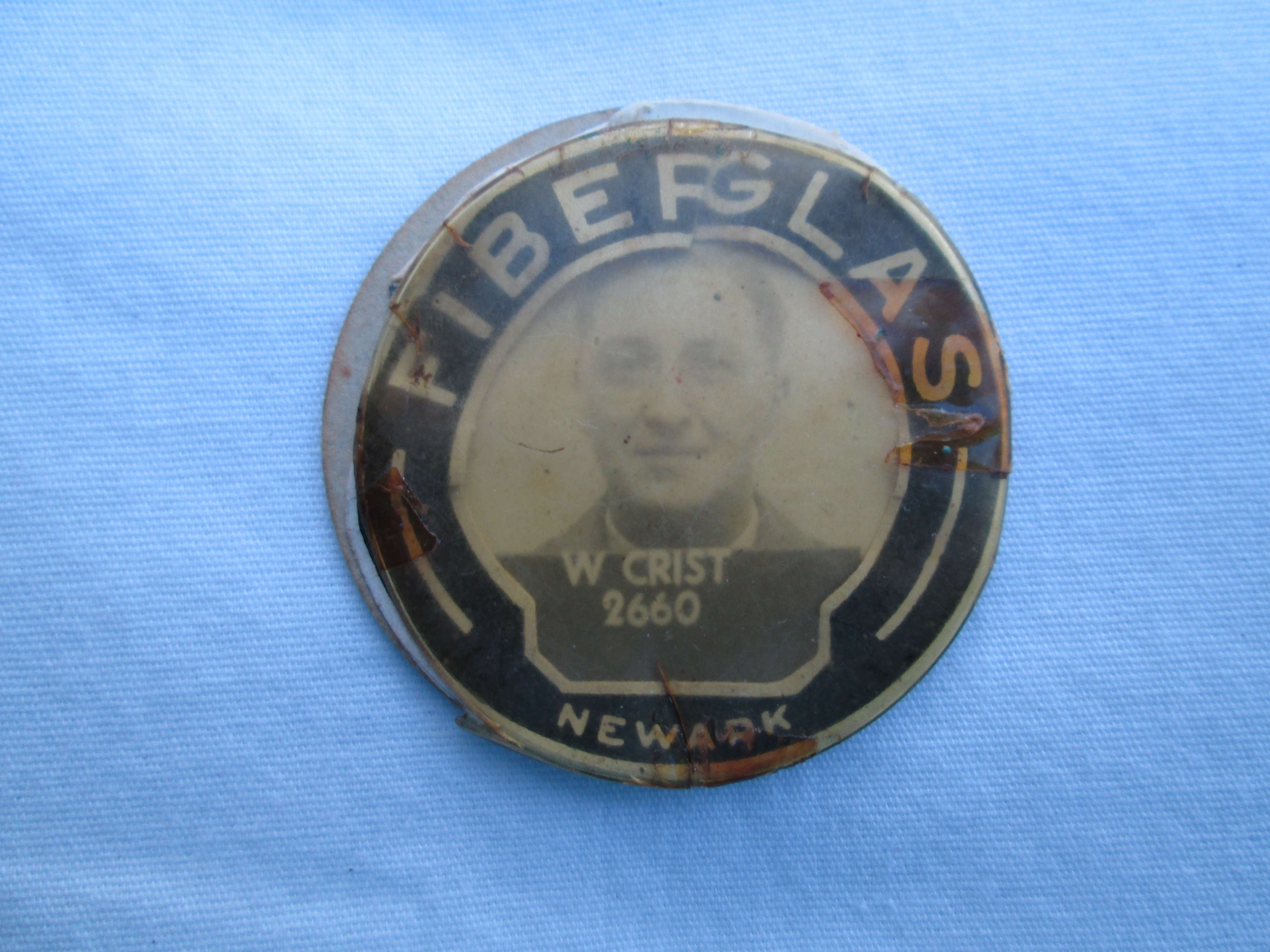 Owens-Corning, Fiberglas Division, Employee Badge, Newark, NJ.